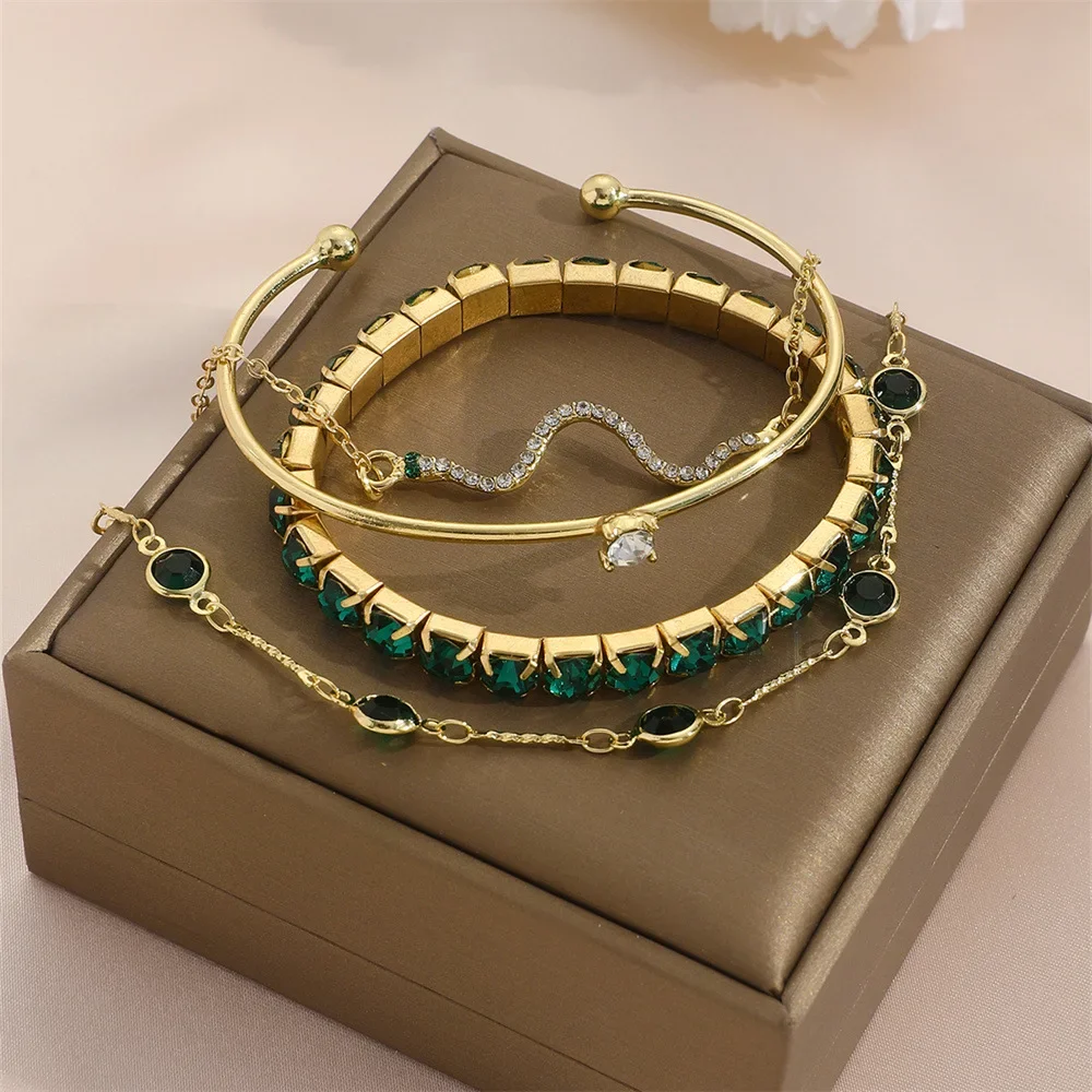 Be the first to review “4Pcs/Set Fashion Snake Green Gemstone Bangle Rhinestone Full Metal Bracelet For Women Birthday Party Christmas Gift Jewerly” Cancel reply