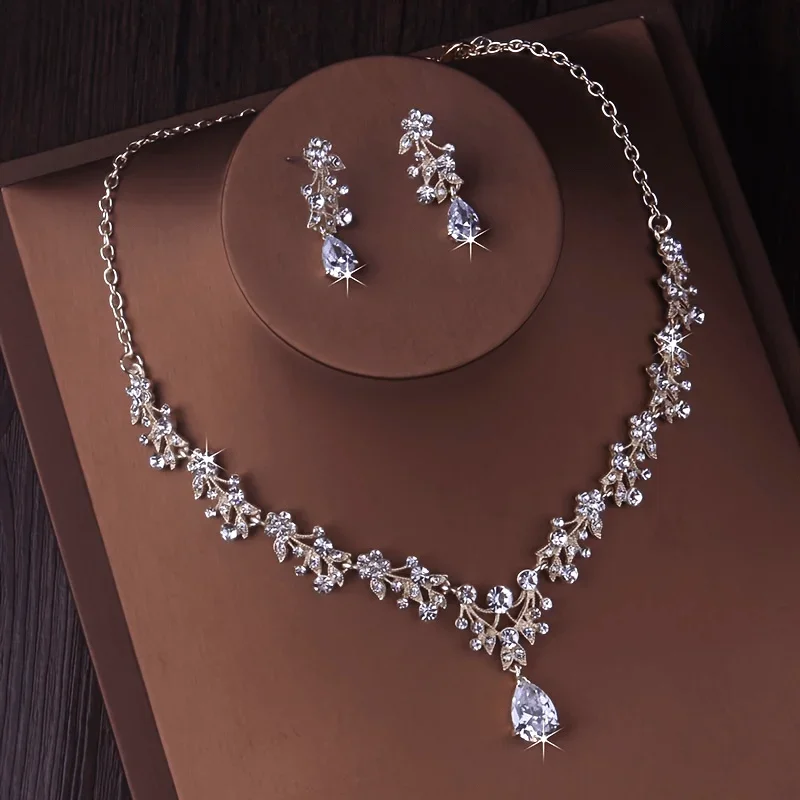 Fashion Bridal Jewelry Wedding Accessories Zircon Rhinestone Set Wedding Banquet Party Versatile Luxury Women’s Necklace Earring