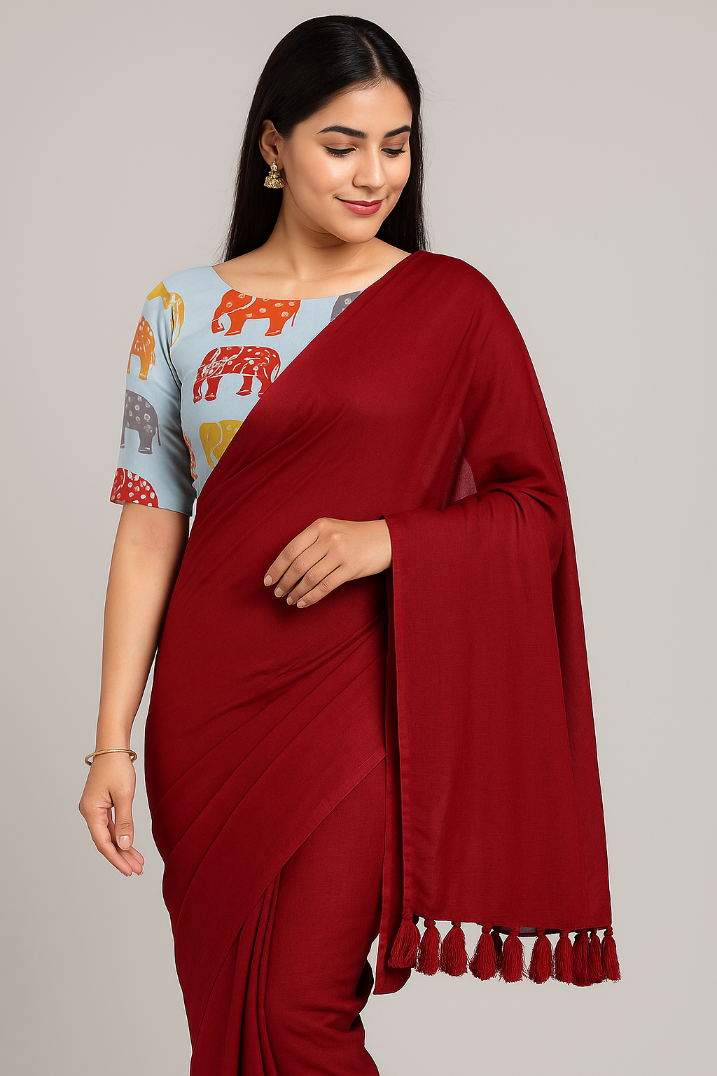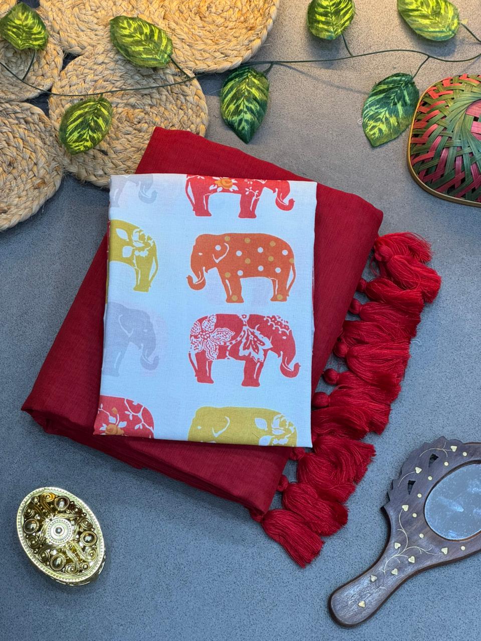 Experience elegance with this beautifully crafted Pure Modal Chanderi Saree, designed with a luxurious feel and enhanced with fancy tassels for a stylish finish. Perfect for festive wear, parties, family functions or gifting.